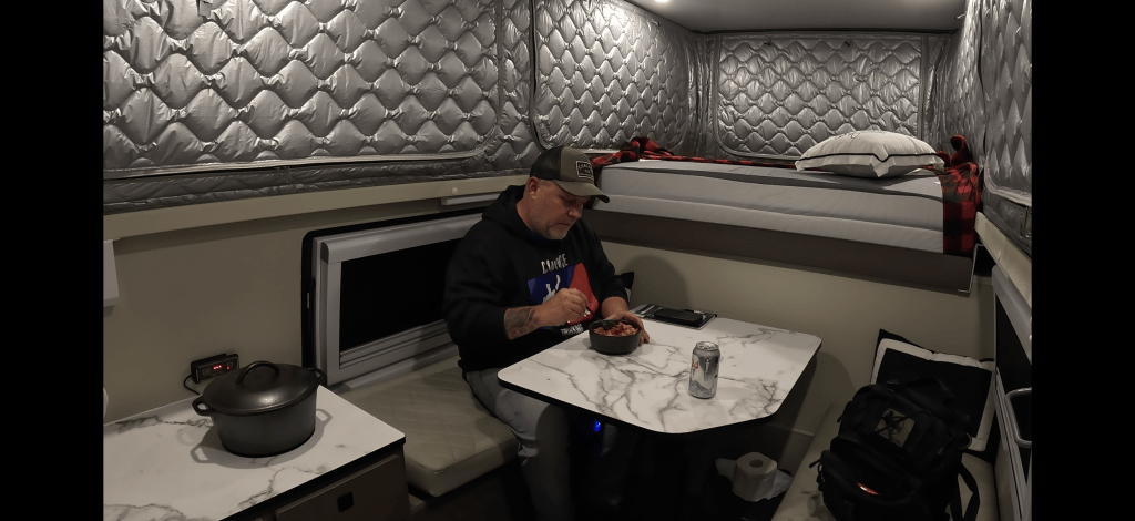 There’s nothing quite like spending a crisp evening tucked inside the NIJI pop-up truck camper, the soft glow of the lights bouncing off the aluminum walls, the scent of hearty traditional American goulash simmering on the stove. This weekend, I jumped in the NIJI Camper for a proper overnight test — not just to enjoy a great camp meal, but also to answer some of your most-asked questions about this awesome little off-grid setup.